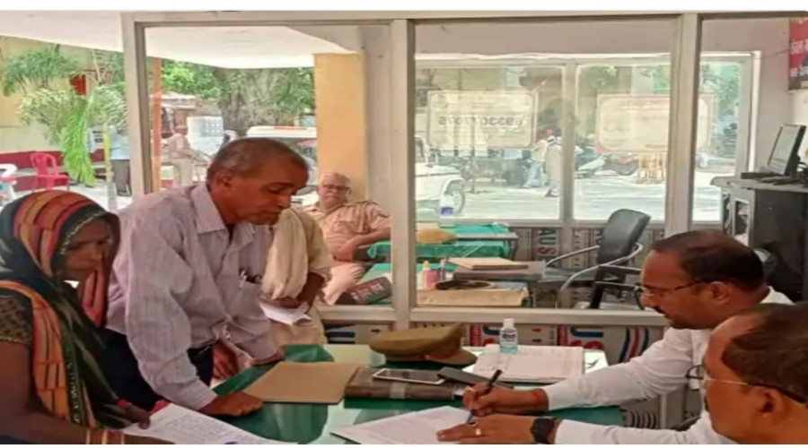 लालगंज आजमगढ़ : देवगांव कोतवाली परिसर में शनिवार को थाना समाधान दिवस पर तहसीलदार शैलेंद्र कुमार स...