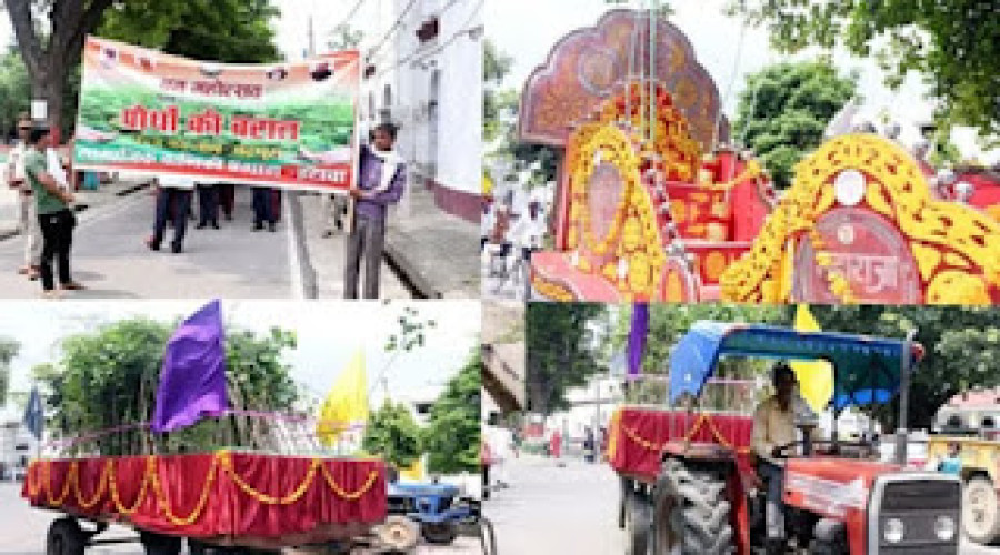 इटावा। जिले में वन महोत्सव कार्यक्रम के तहत मंगलवार को पौधों की बरात निकाली गई। इसमें बरगद दूल्हा...