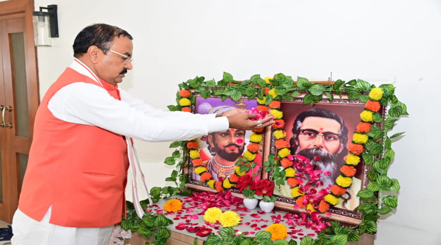 लखनऊ : उत्तर प्रदेश के उप मुख्यमंत्री केशव प्रसाद मौर्य ने अपने कैम्प कार्यालय मे छत्रपति श...