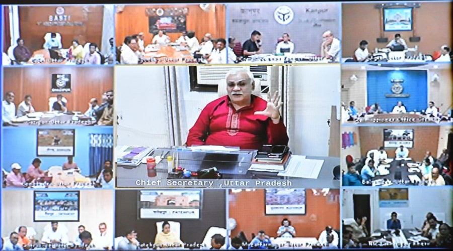 लखनऊ: प्रदेश के मुख्य सचिव दुर्गा शंकर मिश्र ने वीडियो कॉन्फ्रेंसिंग के माध्यम से समस्त मण्...