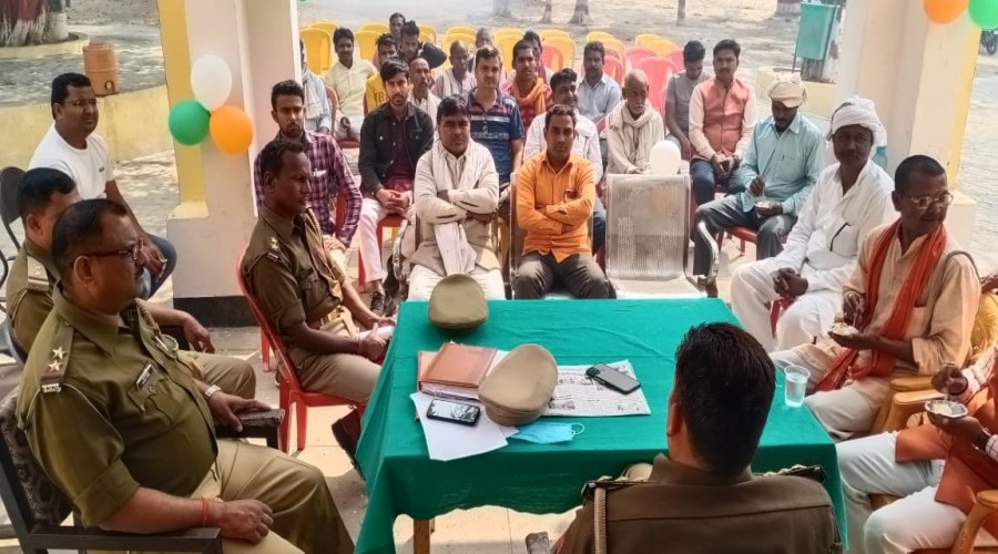 अतरौलिया।आगामी त्योहार तथा त्रिस्तरीय पंचायत चुनाव को लेकर थाना परिसर में पीस कमेटी की हुई बैठक।&...