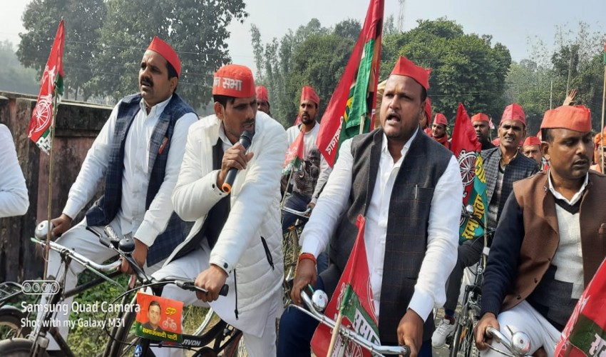 अम्बेडकर नगर।समाजवादी पार्टी के राष्ट्रीय अखिलेश यादव के निर्देश पर बिड़हर चौराहे से समाजवादी किस...