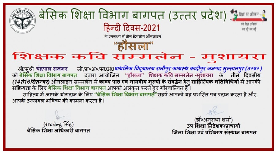 कादीपुर सुल्तानपुर । प्राथमिक विद्यालय रानीपुर कायस्थ के सहायक अध्यापक चंद्रपाल राजभर को बेसि...