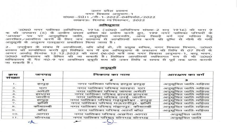 आजमगढ़। जिले के तीन नगर पालिका व 12 नगर पंचायतों के अधक्ष की सूची प्रदेश सरकार ने जारी कर दिया है<...
