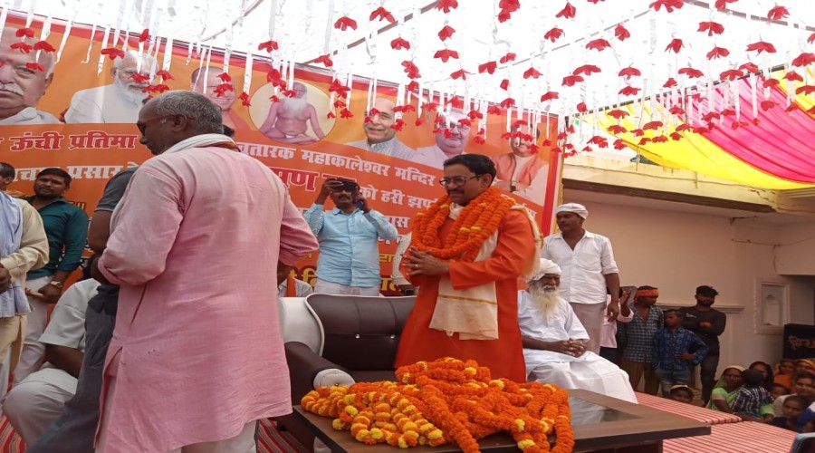 मार्टिनगंज/ठेकमा आजमगढ़:आजमगढ़ के सांसद दिनेश लाल यादव उर्फ निरहुआ बाबा युवराज दास आश्रम से रथ को हर...