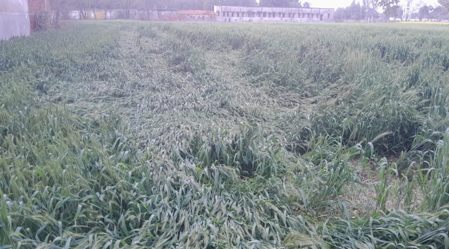दीदारगंज-आजमगढ़ । मार्टिनगंज तहसील क्षेत्रांतर्गत तेज बारिश और आंधी से किसानों की गेहूं की हरी भर...