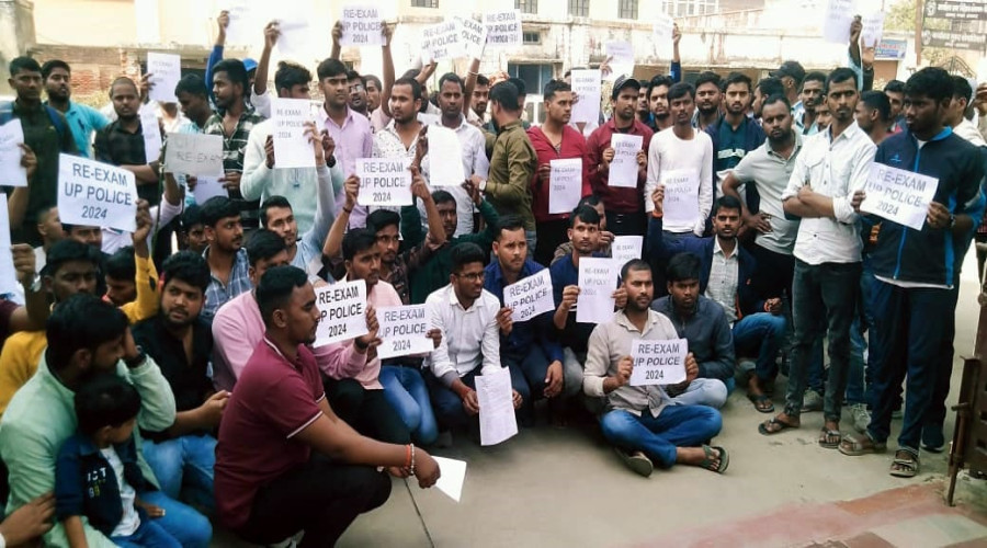 आजमगढ़। आज दोपहर में कलेक्ट्रेट के सामने यूपी पुलिस सिपाही भर्ती परीक्षा देने वाले अभ्यर्थीं सैंकड़...
