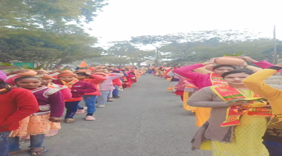 •शोभायात्रा के साथ सरस्वती राधाकृष्ण मंदिर की छात्राओं ने निकाली कलश यात्रा