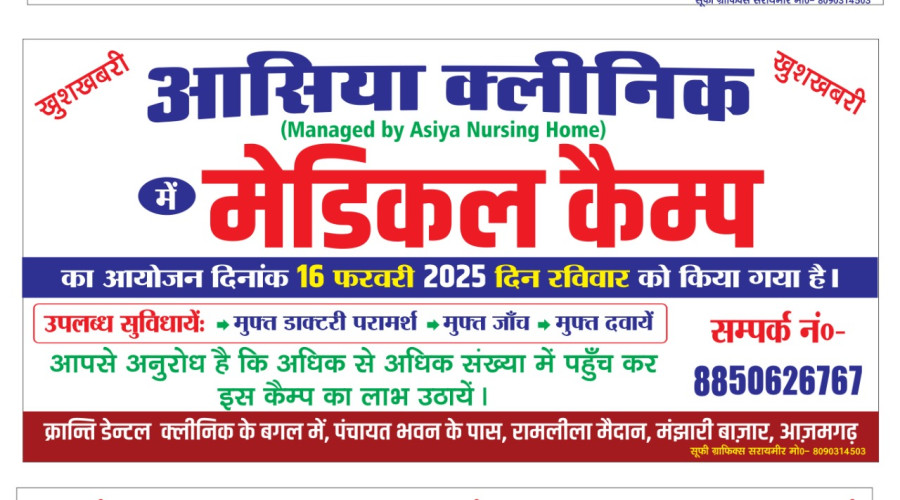 आजमगढ़ । फरिहा निजामाबाद तहसील क्षेत्र अन्तर्गत मंझारी बाजार क्रांति डेंटल क्लीनिक के बगल में पंच...