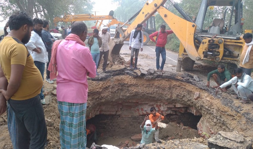 ●कई हादसों के बाद मेन रोड की टूटी पुलिया की आज मरम्मत ।खेतासराय (जौनपुर) गुरैनी बाजार के आगे...
