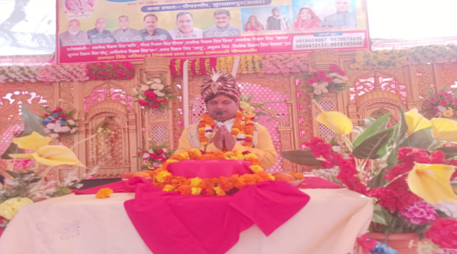 सुलतानपुर । क्षेत्र के पीपरगांव स्थित मजगीर बाबा धाम पर चल रही सात दिवसीय संगीतमय श्रीमद्भा...
