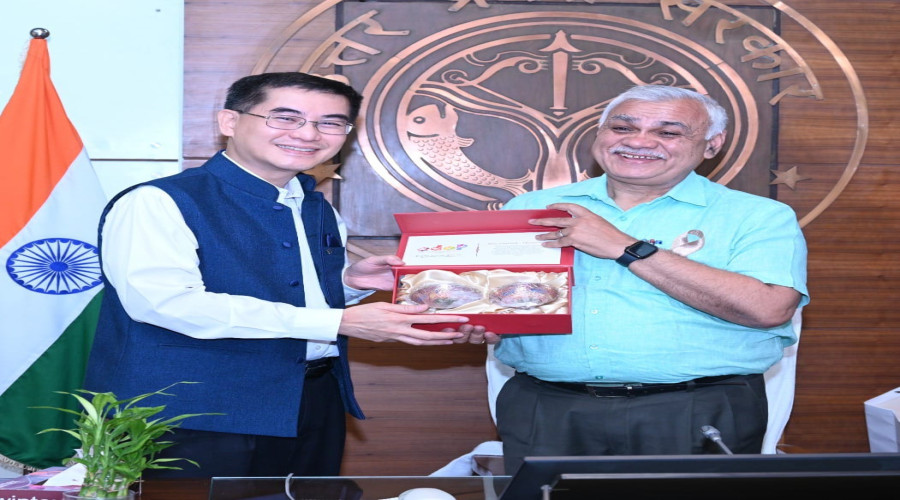 लखनऊ: मुख्य सचिव दुर्गा शंकर मिश्र ने ईएमडी और एसआईपीओ के प्रमुख व वरिष्ठ निदेशक फ्रांसिस च...