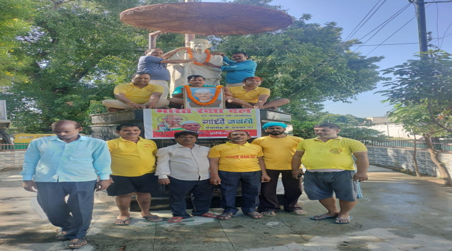 रैदोपुर में स्थापित गाँधी जी की मूर्ति व पार्क की साफ सफाई करते नजर आए भारत रक्षा दल के कार्यकर्ता