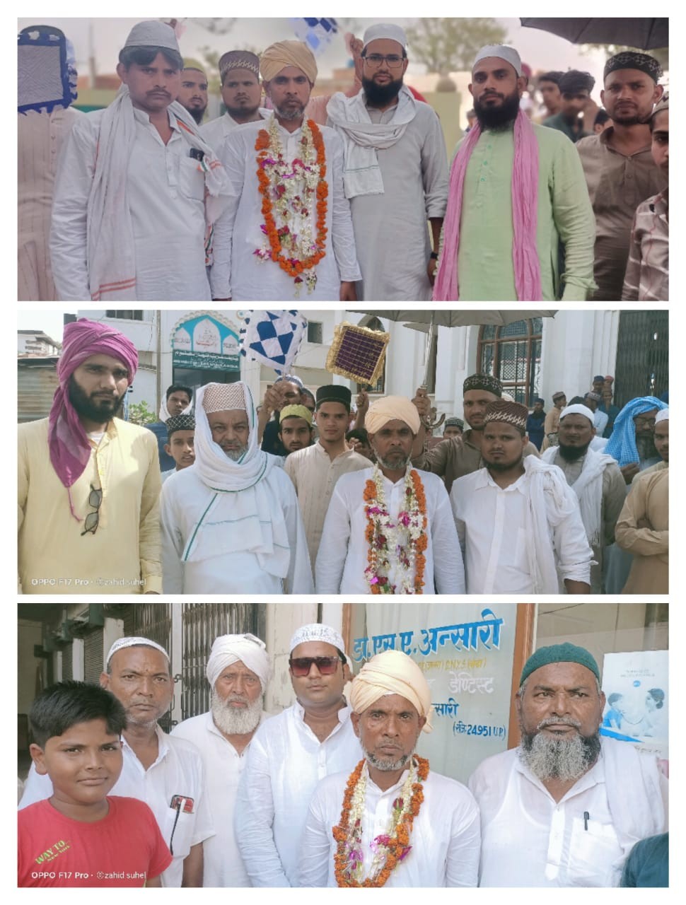 मुकद्दस हज यात्रा के लिए रवाना हुए जुमेल अहमद व उनकी अहलिया जाहिदा खातून,कस्बे के लोगों ने माला पहनाकर हज्जे बैतुल्लाह के लिए किया रवाना
