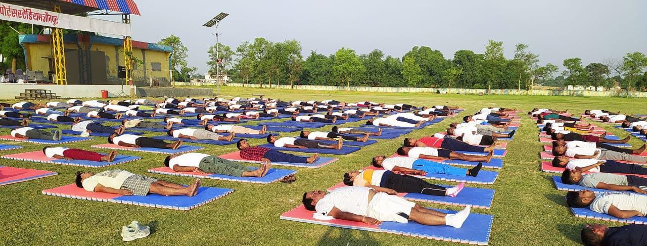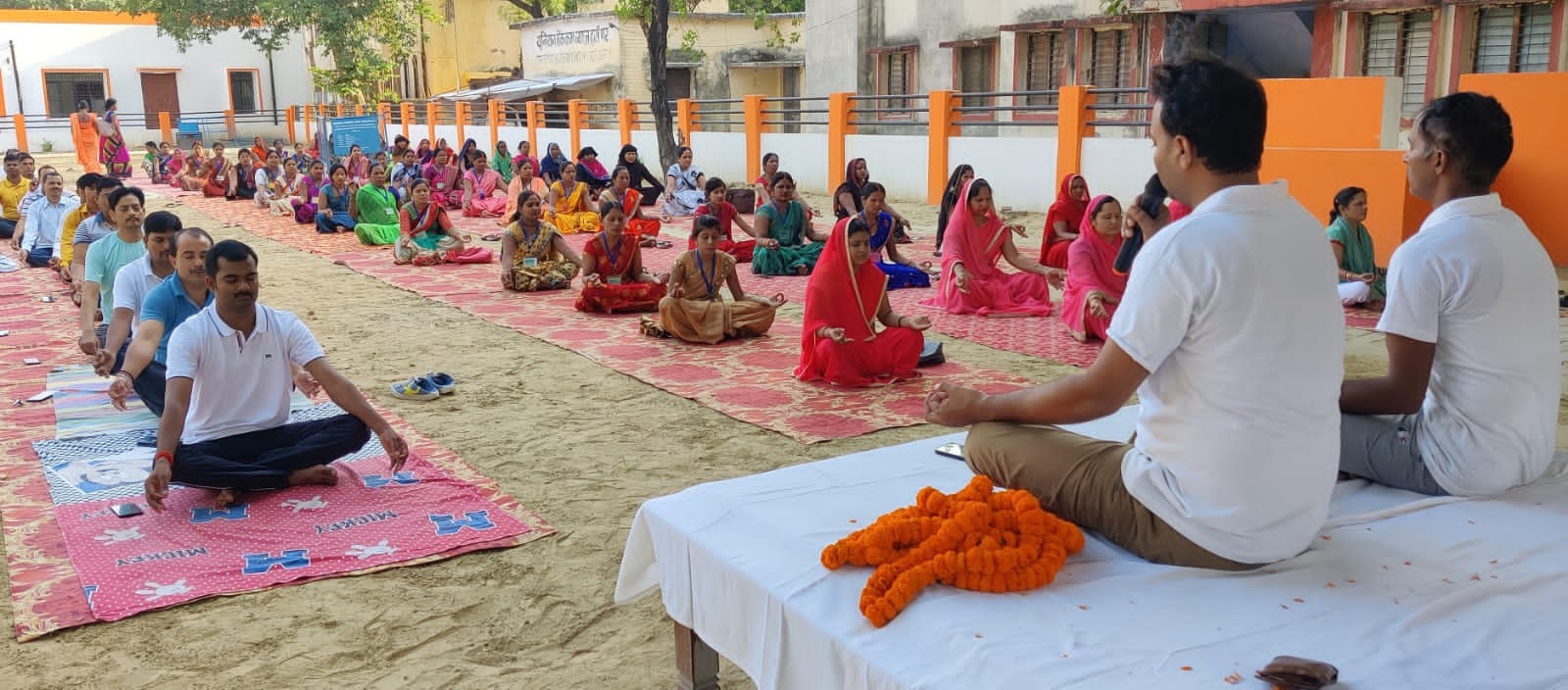 इंद्रा गाँधी स्टेडियम, विकास खण्ड करंजाकला एवम राजकीय औद्योगिक प्रशिक्षण संस्थान के लोगों ने सीखा योग का गुण