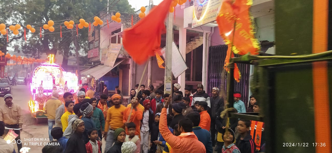 अहरौला - आजमगढ़। अयोध्या में 500 वर्षों बाद राम मंदिर के निर्माण पर पूरे देश में भव्य रूप से इस उत्सव को लोगों ने दीपावली की तरह मनाया अहरौला में राम जानकी मंदिर पर भजन कीर्तन रामायण पाठ के साथ लाइट और झालरों से सजाया गया और शाम करीब 6:00 बजे राम जी की सवारी के डिजे के साथ भब्य शोभायात्रा निकाली शोभायात्रा पूरी तरह से भगवा मै दिखीं हर तरफ श्री राम के जयकारे लगा रहे थे झूमते हुए नाचते हुए गाते हुए पूरे कस्बे के लोग अहरौला से लेकर मतलूपुर चांदनी चौक पकड़ी तक रात कारी 11:00 बजे तक यह शोभायात्रा चलती रही जिसमें प्रसाद वितरण भी किया जा रहा था पूरे कस्बे को हर घर पर दिया जलाकर पूरी तरह से देव दिवाली मनाई जा रही थी और पूरे कस्बे को भगवा कलर के गुब्बारे और झालरों से सजा दिया गया था पूरे कस्बे को चुने से छिड़काव कराकर सजाया गया था यह सारी व्यवस्था ग्राम प्रधान अहरौला कल्पना चौरसिया के नेतृत्व में किया गया था और उसमें कार्यक्रम को सफल बनाने में मनीष बरनवाल शेखर सोनकर अमन अग्रहरि श्री घनश्याम पांडेय सूरज जायसवाल ऋषभ नीरज चौरसिया चौरसिया आकाश अग्रहरि आकाश सोनकर आजाद जायसवाल अरविंद अग्रहरि आलोक बरनवाल आदि रहे इसी तरह अहरौला के उदैना में रोशन उपाध्याय और रीना उपाध्याय के द्वारा भव्य रूप से सुंदरकांड पाठ के साथ राम जी की भब्य शोभा यात्रा निकाली गई यह शोभायात्रा पूरे गांव में घर-घर पहुंचकर लोगों को राम के प्रति शुभ संदेश दे रहे थे बच्चे राम लक्ष्मण सीता हनुमान भरत और शत्रुघ्न के रूप में राम के रूप में प्रदर्शित हो रहे थे यह शोभायात्रा डिहकाली स्थान पर पहुंची जहां पर पूजन आरती के साथ प्रसाद वितरण का कार्यक्रम हुआ इस मौके पर गांव की महिलाओं ने मंगल गीत गाए।