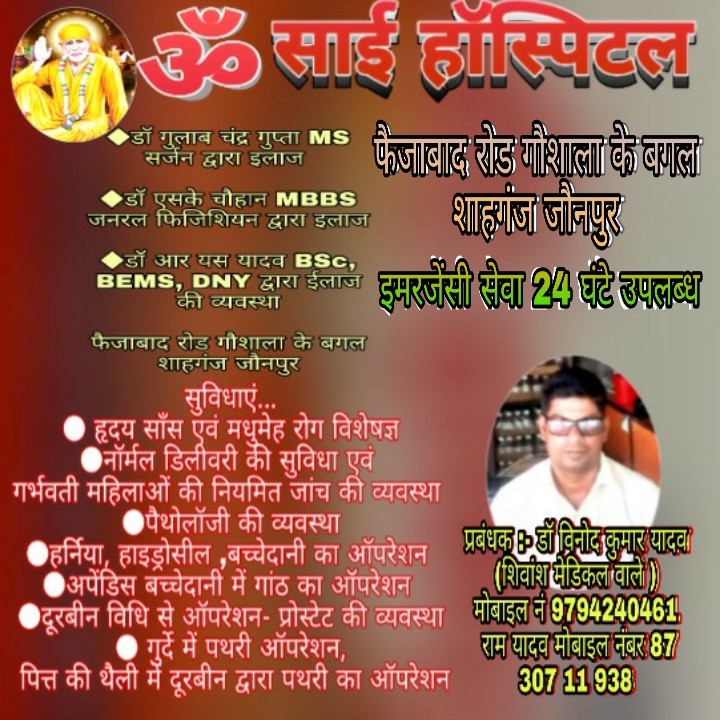 ओम साईं हॉस्पिटल फैजाबाद रोड गौशाला के बगल में शाहगंज जौनपुर इमरजेंसी सेवा 24 घंटे उपलब्ध