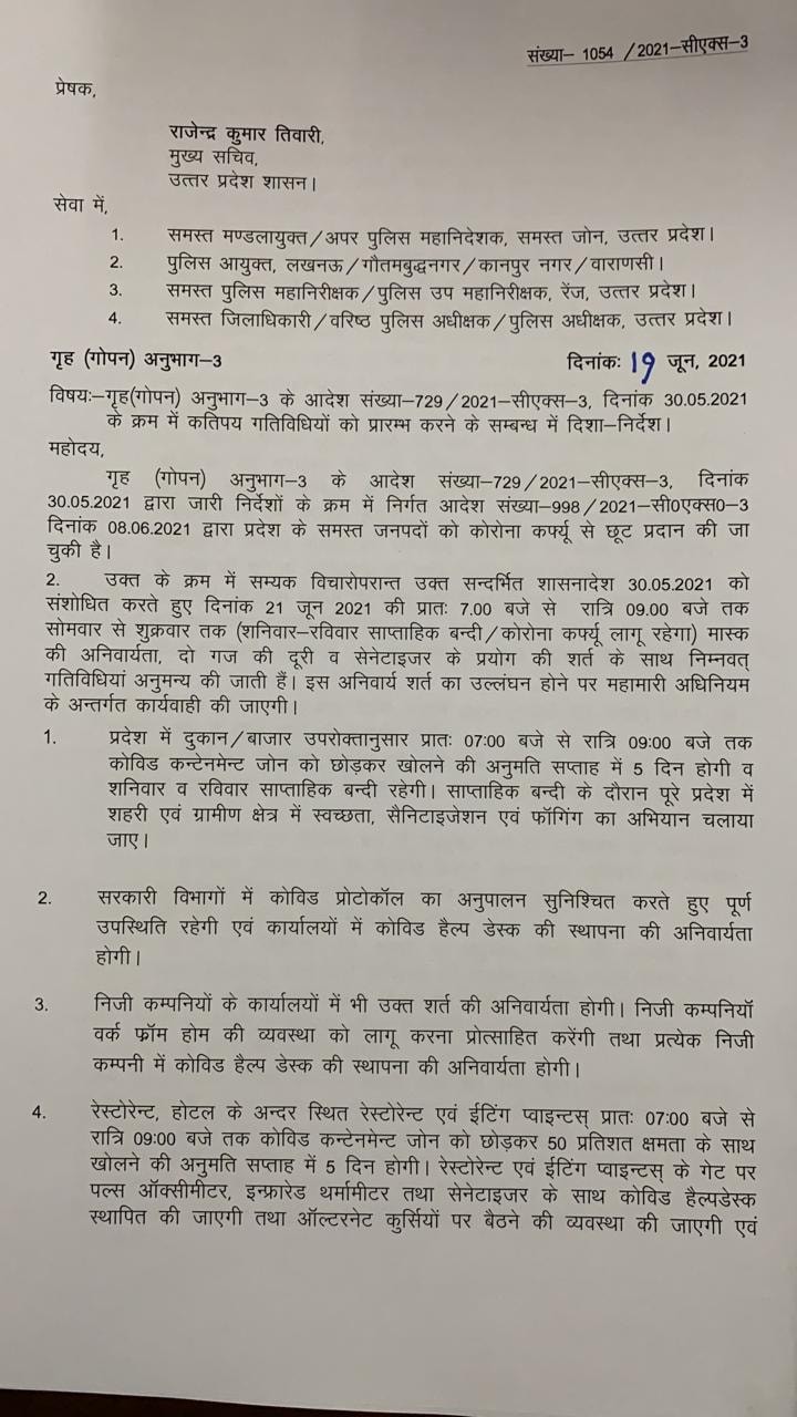 21 जून 2021 यानी कल से उत्तरप्रदेश में कोरोना कर्फ्यू में थोड़ी सी राहत