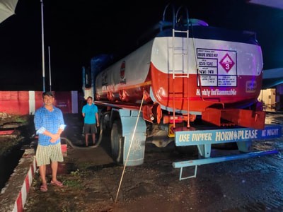 आपूर्ति करने वाले टैंकर पर लिखा रखा है इंडियन आयल