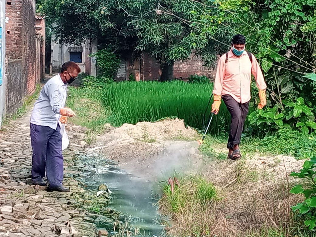 अंबारी आजमगढ़ : फूलपुर कोतवाली क्षेत्र के भेड़िया ग्राम सभा में लगातार कोविंद 19 को देखते हुए साफ सफाई का कार्य जोरों पर है बता दें कि उत्तर प्रदेश सरकार और भारत सरकार फ्रंटलाइन वर्करों में सफाई कर्मियों को सबसे ज्यादा महत्व दिया। सरकारों ने कहा कि स्वच्छता की पूरी जिम्मेदारी हर एक नागरिक के साथ नियुक्त हर एक सफाई कर्मी की होती है । ऐसे में कोविंड 19 महामारी को मात देने के लिए वैक्सीनेशन के साथ-साथ साफ-सफाई भी बहुत जरूरी है ,जिसे लेकर प्रधानमंत्री नरेंद्र मोदी और उत्तर प्रदेश के मुख्यमंत्री योगी आदित्यनाथ ने लगातार सफाई कर्मियों को फ्रन्ट लाइन वर्कर्स घोषित कर हमेशा ही प्रोत्साहित करने का कार्य किए हैं बता दें कि स्थानीय कोतवाली क्षेत्र के भेड़िया ग्राम सभा में साफ-सफाई को लेकर सफाई कर्मियों द्वारा लगातार अपनी ड्यूटी के साथ-साथ अतिरिक्त समय में भी गांव की साफ सफाई पर विशेष ध्यान दिया गया कहीं कहीं पानी निकासी ना होने पर जलजमाव की समस्या बनी है ऐसे में सफाई कर्मियों के पास अतिरिक्त कोई ऑप्शन ना होकर दवाओं का पाउडर छिड़काव और घोल छिड़ककर महामारी को मात देने के लिए हर संभव प्रयास किया जाता है। सफाई कर्मी उदयराज मौर्य और कैलाश के द्वारा लगातार प्रयास से ही गांव स्वच्छता के तरफ बड़ी तीव्रता से आगे बढा है लोगों के अंदर इस बात को लेकर उत्साह भी है इस तरह से काम करने का जो हौसला सफाई कर्मियों में है एक दिन जरूर यह गांव स्वच्छता के शिखर पर नजर आएगा देखिए गांव की दोनों तरफ दवाओं का छिड़काव करते नजर आए।