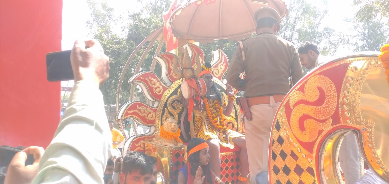 बिलरियागंज / आजमगढ़ स्थानीय कस्बा बिलरियागंज में आज साम नया चौक बिलरियागंज से शिव बारात की झांकी निकाली गई जिसमें तरह तरह के कलाकारों द्वारा भक्ति गीतों से लोगों को मंत्रमुग्ध कर दिया वहीं लोगों की मांग पर शिव तांडव प्रस्तुत किया गया जिसमें लोगों अच्छा लगने पर कई बार शिव तांडव प्रस्तुत करवाया गया जिसमें थानाध्यक्ष विजय प्रकाश मौर्य के नेतृत्व में भारी संख्या में पुलिस झांकी को निकाल रही थी वहीं याता यात चालु रहा जिसमें झांकी नया चौक, पुराना चौक,खास बाजार, कासिमगंज, होते हुए सहाबुद्दीनपुर में समाप्त हो गया।